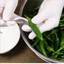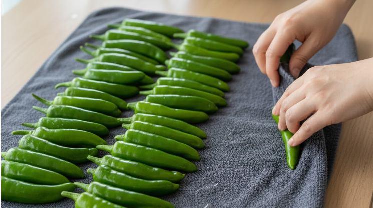 성공적인 고추장아찌 만드는법의 시작은 좋은 고추를 고르는 것입니다. 장아찌용으로는 과육이 단단하고 크기가 일정한 청양고추나 아삭이고추가 적합합니다. 고추를 깨끗이 씻은 뒤 물기를 '완전히' 제거하는 것이 중요한데, 수분이 남아 있으면 보관 중 곰팡이가 생길 수 있기 때문입니다. 꼭지는 1cm 정도 남기고 깔끔하게 정리해 주세요.