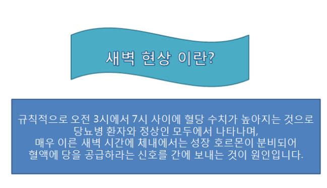 당뇨 환자나 전단계인 분들 중에는 자기 전보다 아침에 혈당이 더 높은 경우가 있습니다. 이는 기상을 돕기 위해 몸에서 호르몬이 나오며 혈당을 올리는 '새벽 현상' 때문입니다. 이러한 경우 단발적인 측정보다는 연속적인 변화를 살펴 공복혈당 정상수치를 유지하고 있는지 파악하는 것이 필요합니다.