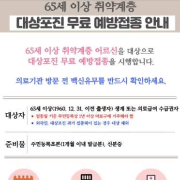 대부분의 지자체에서 가장 우선순위로 두는 대상포진 무료접종 대상은 기초생활수급자 및 차상위계층입니다. 경제적 어려움으로 고가의 백신 접종을 망설이는 분들을 위해 우선적으로 지원이 이루어지며, 이 경우 연령 기준이 일반 시민보다 조금 더 낮게 설정되기도 합니다.