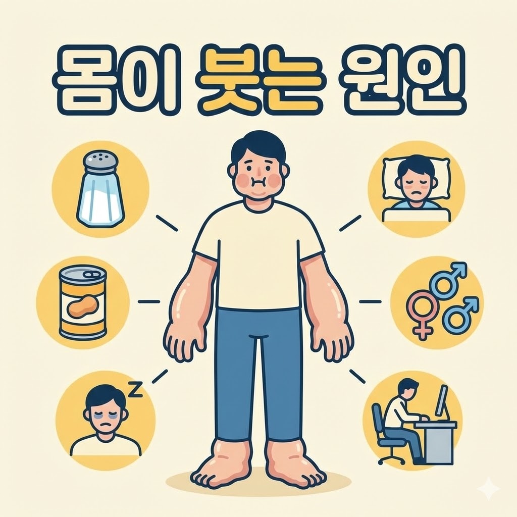 아침에 일어났을 때 얼굴이 붓거나, 저녁만 되면 신발이 꽉 낄 정도로 발이 붓는 증상은 누구나 겪을 수 있는 불편함입니다. 대부분은 일시적인 현상이지만, 때로는 우리 몸이 보내는 건강 적신호일 수도 있는데요. 오늘은 평소보다 유독 몸이 붓는 원인 6가지와 이를 해결하기 위한 생활 습관을 상세히 정리해 드립니다.