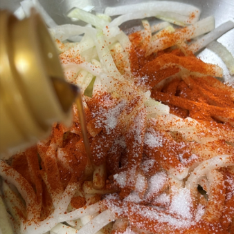 3. 고춧가루로 미리 색 입히기
