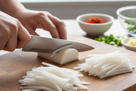 성공적인 무생채 맛있게 하는법의 첫걸음은 무를 써는 방향입니다. 무는 결이 세로로 나 있기 때문에 결 방향대로 채를 썰어야 수분이 덜 빠지고 아삭한 식감이 오래 유지됩니다. 또한 무의 초록색 부분은 단맛이 강하고 단단하므로 생채용으로 적합하며, 흰 부분은 국이나 조림용으로 사용하는 것이 좋습니다.