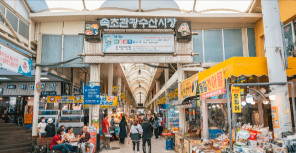 여행의 묘미는 역시 먹거리죠. 속초 가볼만한곳 베스트10 필수 코스인 이곳은 중앙시장으로도 불립니다. 유명한 닭강정부터 오징어순대, 씨앗호떡, 싱싱한 활어회까지 속초의 모든 별미가 모여 있습니다. 활기찬 시장 분위기를 느끼며 미식 여행을 즐기기에 최적의 장소입니다.