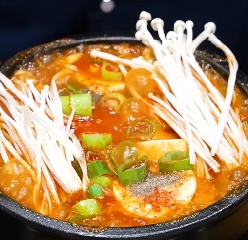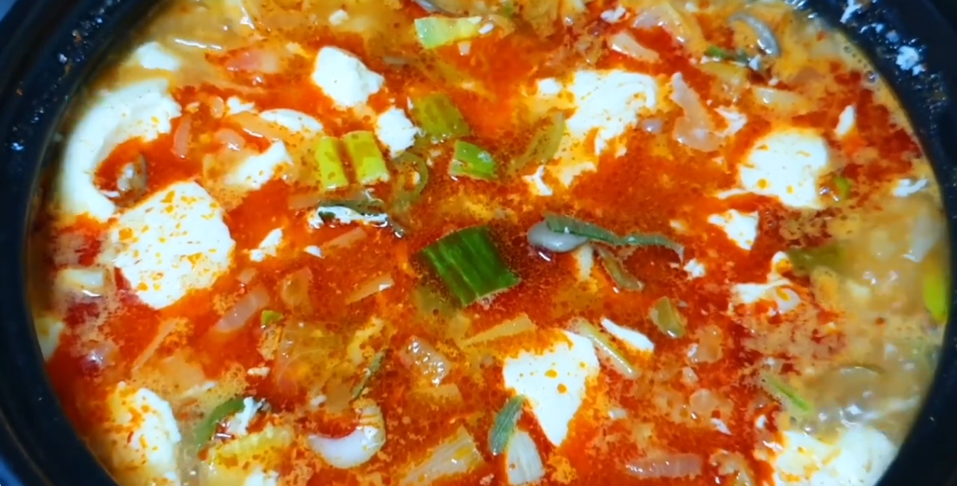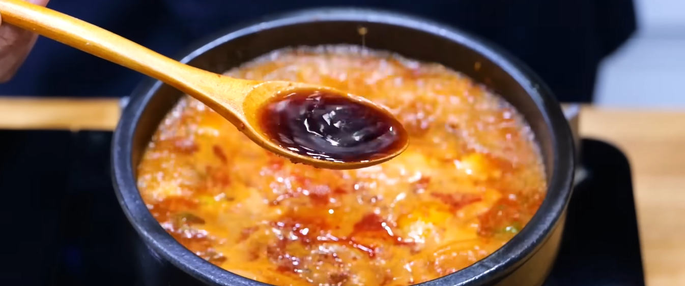 순두부찌개의 생명은 붉고 진한 국물입니다. 팬에 식용유와 참기름을 섞고 대파, 다진 돼지고기, 고춧가루를 넣어 타지 않게 볶아 고추기름을 내는 것이 핵심적인 순두부찌개 황금레시피입니다. 이렇게 만든 양념 베이스가 국물의 깊이를 결정하며 식당 특유의 감칠맛을 만들어냅니다.