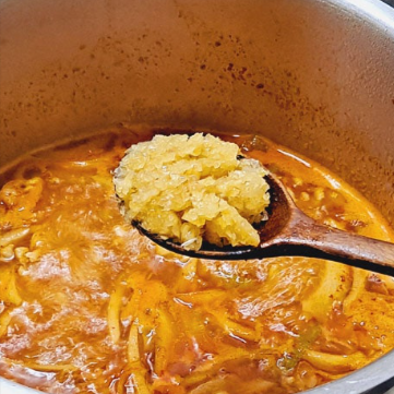 불을 끄기 직전에 다진 마늘 반 큰 술과 후추를 톡톡 뿌려주는 것이 깔끔한 뒷맛을 내는 순두부찌개 황금레시피의 마무리입니다. 마늘 향이 너무 오래 끓으면 날아갈 수 있으므로 마지막에 넣어 풍미를 살려주세요. 여기에 송송 썬 대파와 청양고추를 더하면 칼칼함이 배가 됩니다.