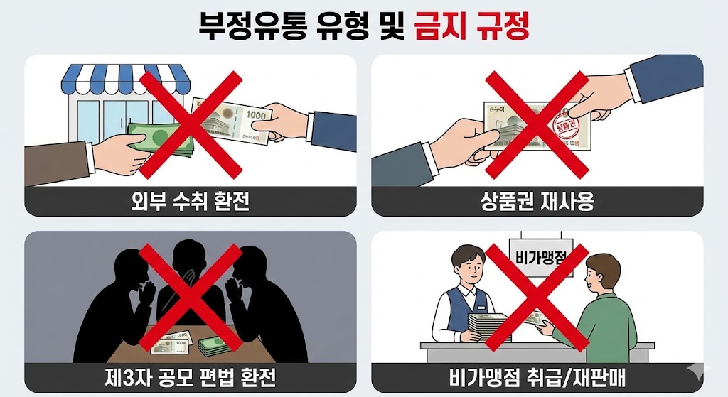 - 등록 점포 외부에서 상품권을 수취해 환전하는 행위