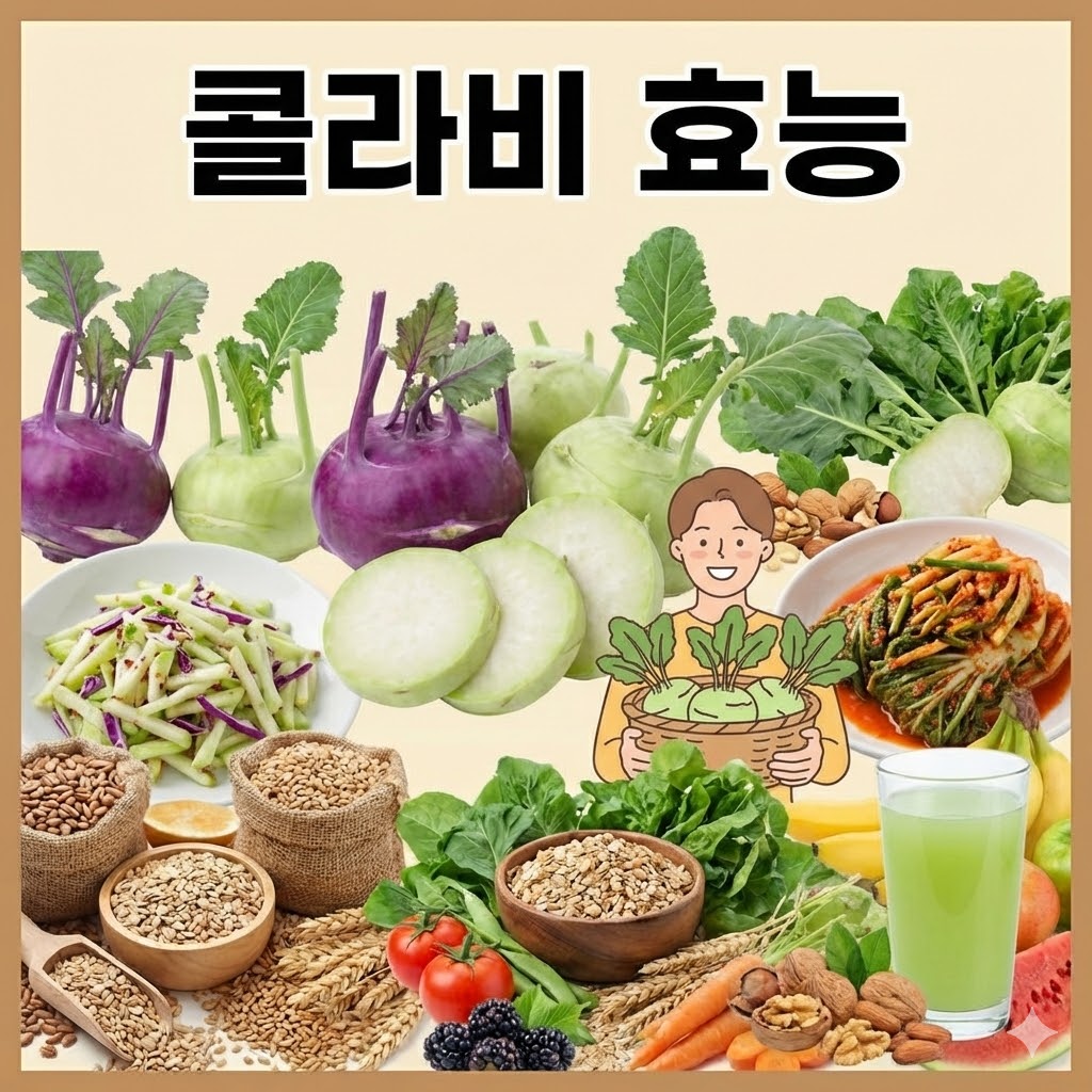 양배추의 성질을 이어받은 콜라비 효능은 위 점막을 보호하고 소화를 돕는 것입니다. 식이섬유가 장내 유익균의 먹이가 되어 장 환경을 개선하고 소화 불량을 완화해 줍니다. 평소 속 쓰림이 잦거나 장 건강이 좋지 않은 분들이 생으로 깎아 먹거나 즙으로 마시면 속이 편안해지는 것을 느낄 수 있습니다.